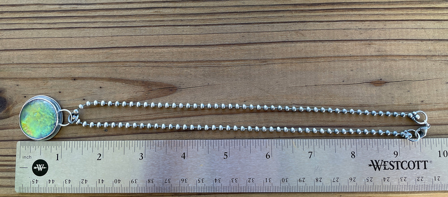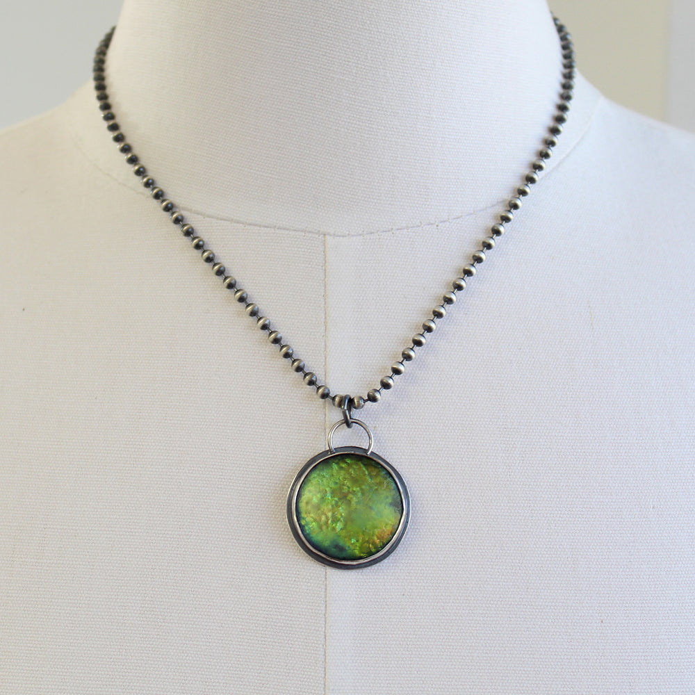 Handmade Sterling Silver & Iridescent Green Glass Pendant Necklace