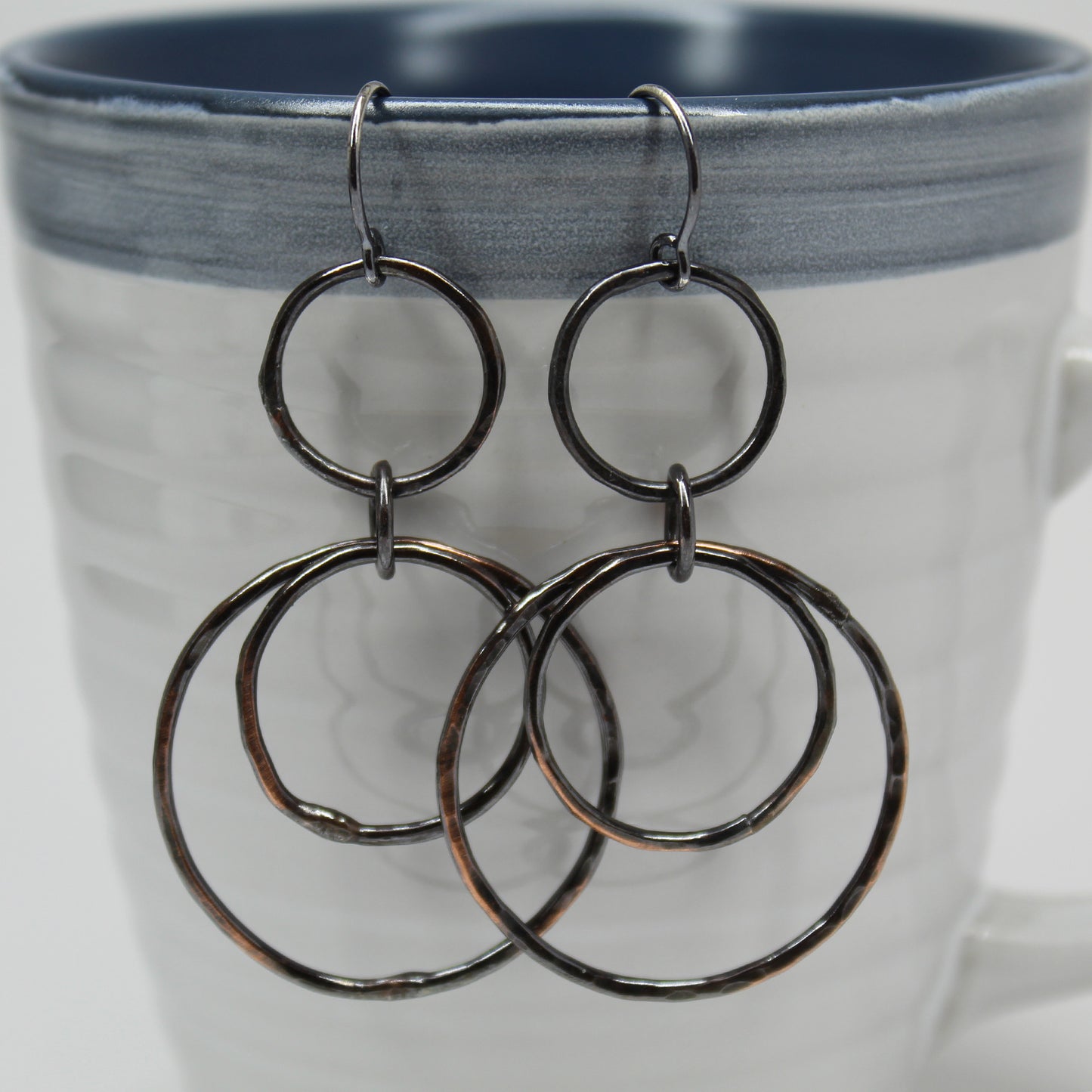 Artisan Hammered Copper Hoop Dangle Earrings with Sterling Silver Ear Wires