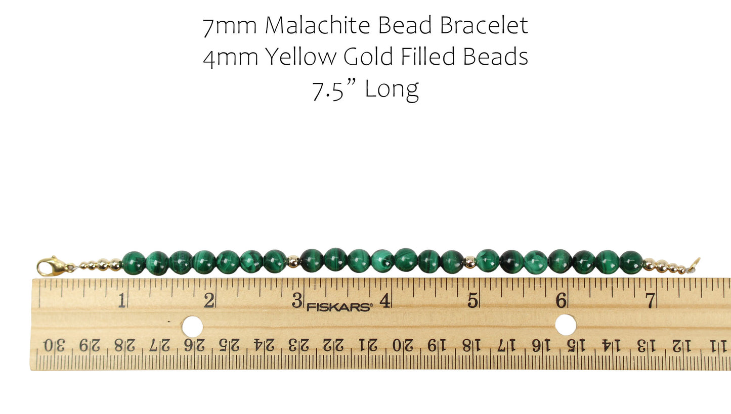 Malachite & Gold-Filled Bead Bracelet 7.5" Long