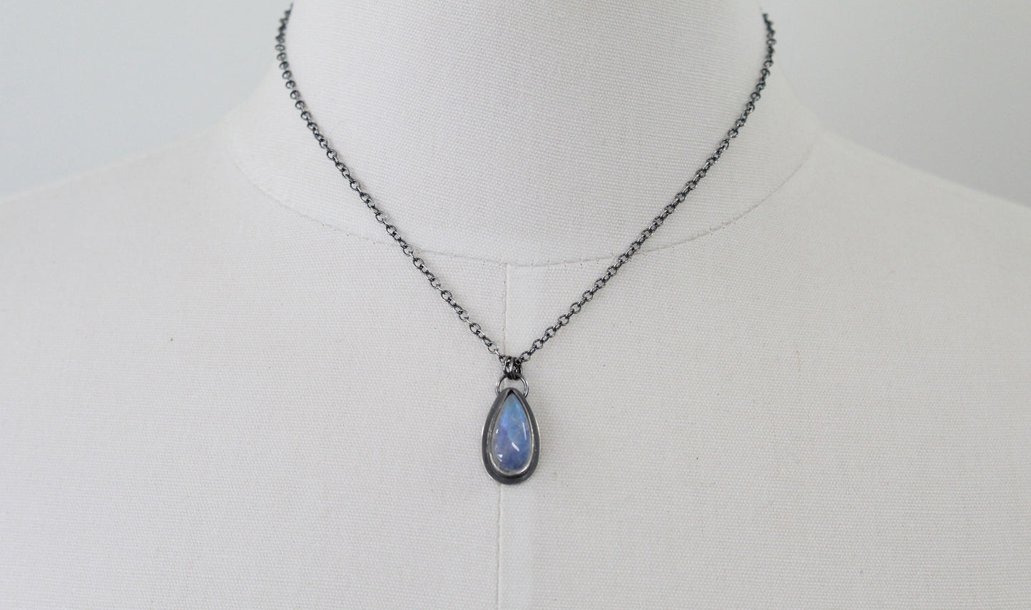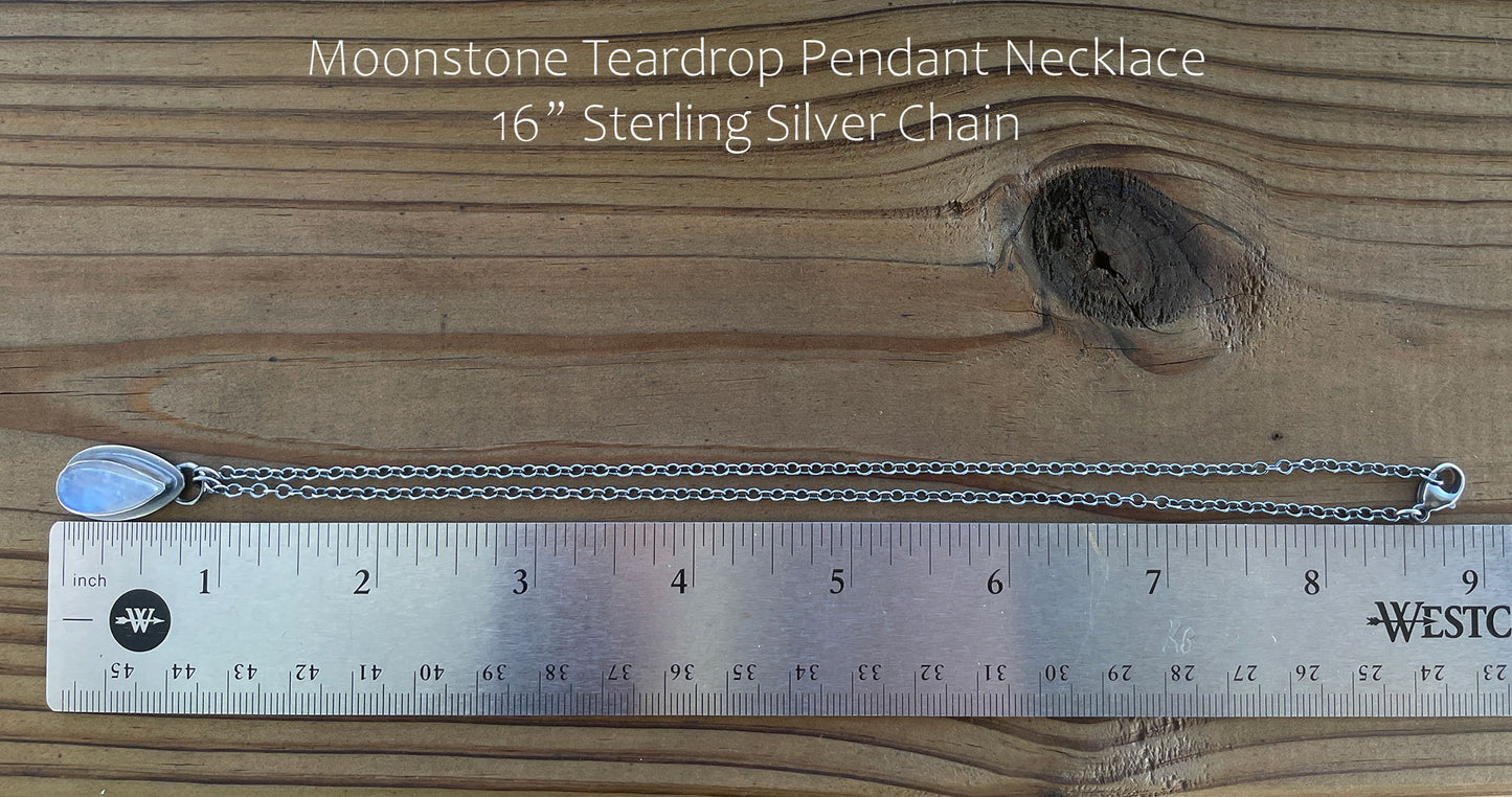 Moonstone Teardrop Pendant Necklace in Sterling Silver