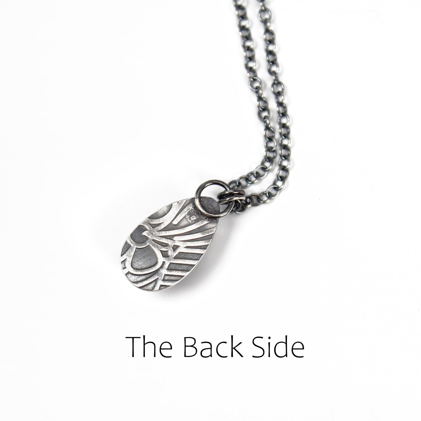 As a traditional June birthstone, this necklace makes a thoughtful gift or a unique addition to your own jewelry collection. The back of the pendant is finished with a unique embossed texture, ensuring the piece is as beautiful from the back as it is from the front. The sterling silver has been treated with an antiqued finish to highlight the artisan details and provide a timeless, vintage feel.