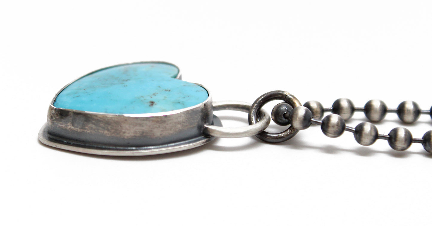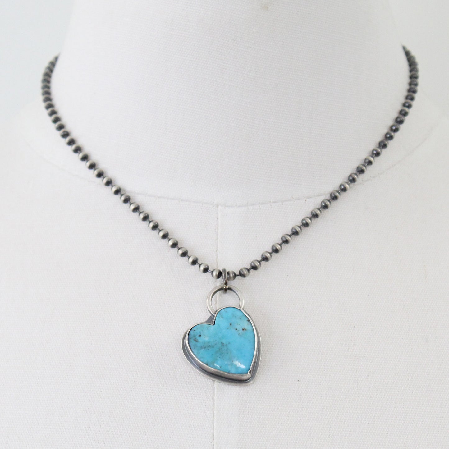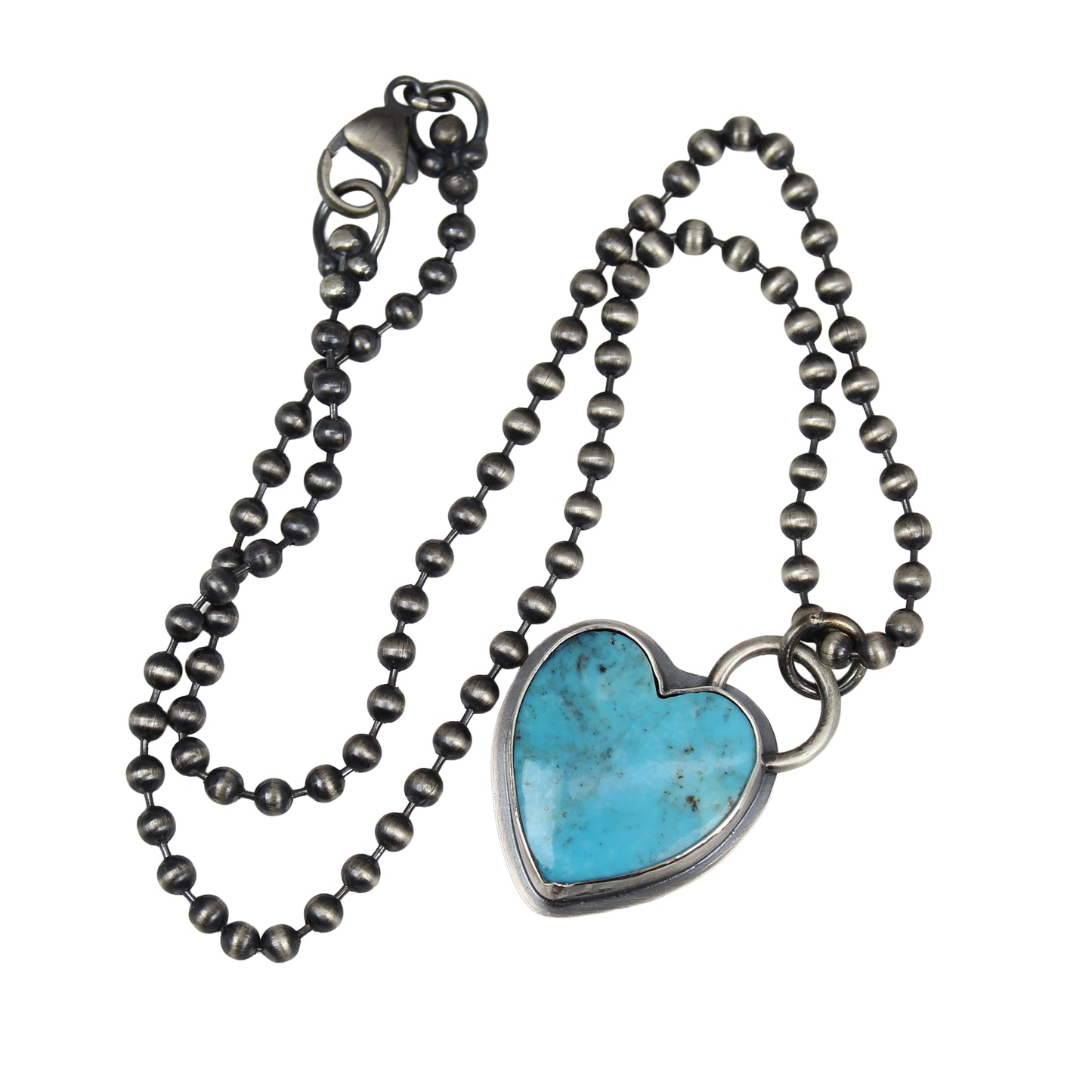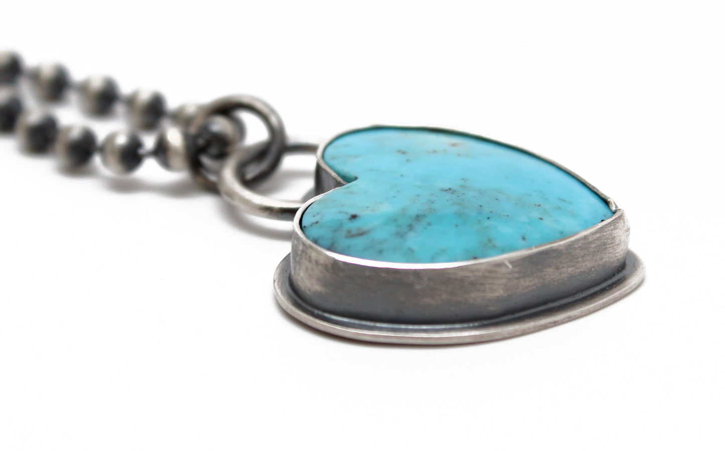 Southwestern Turquoise Heart Pendant Necklace in Sterling Silver