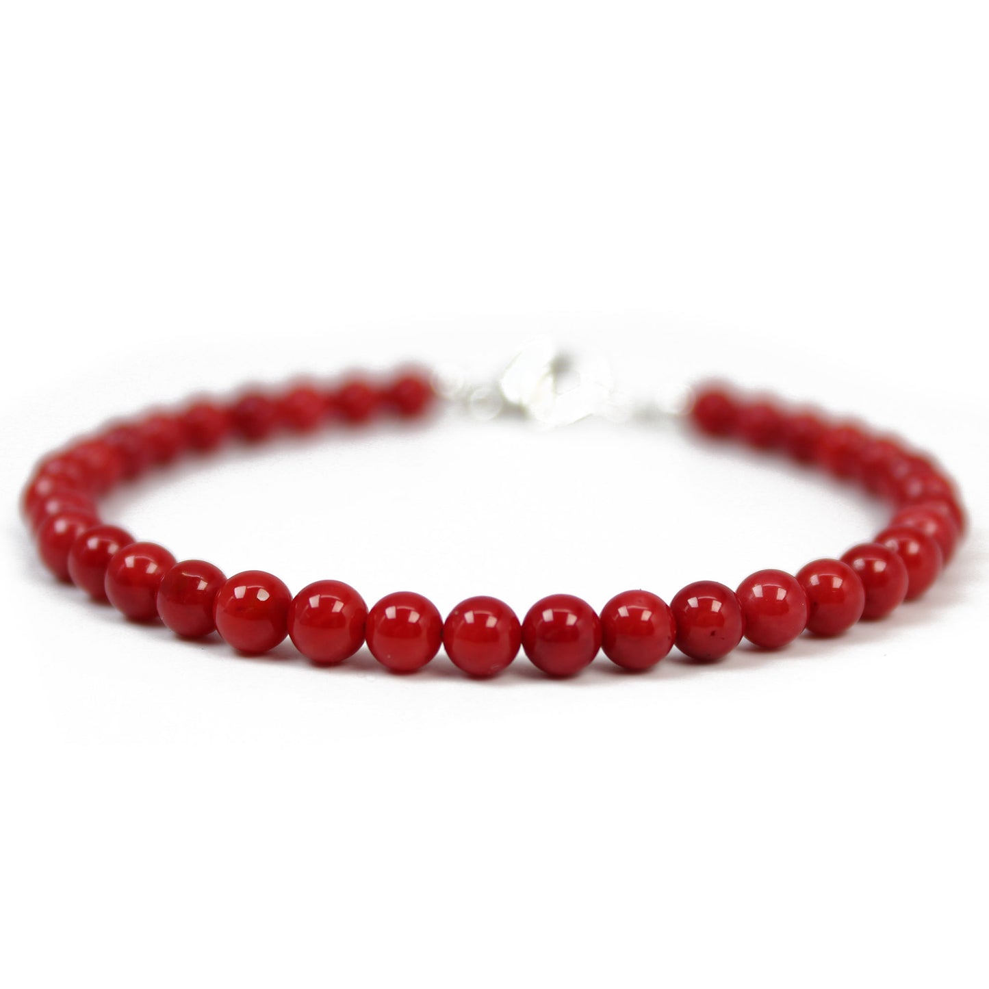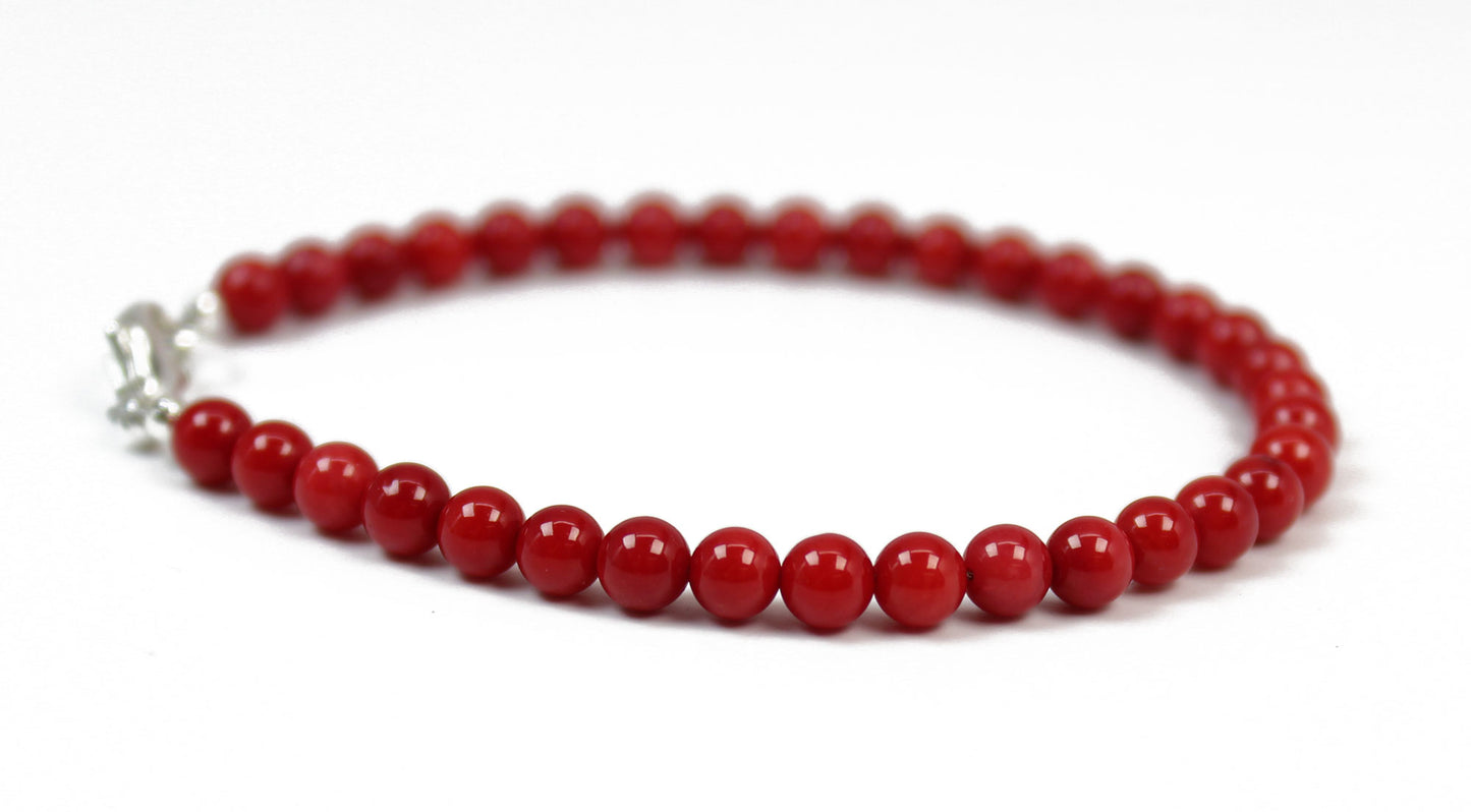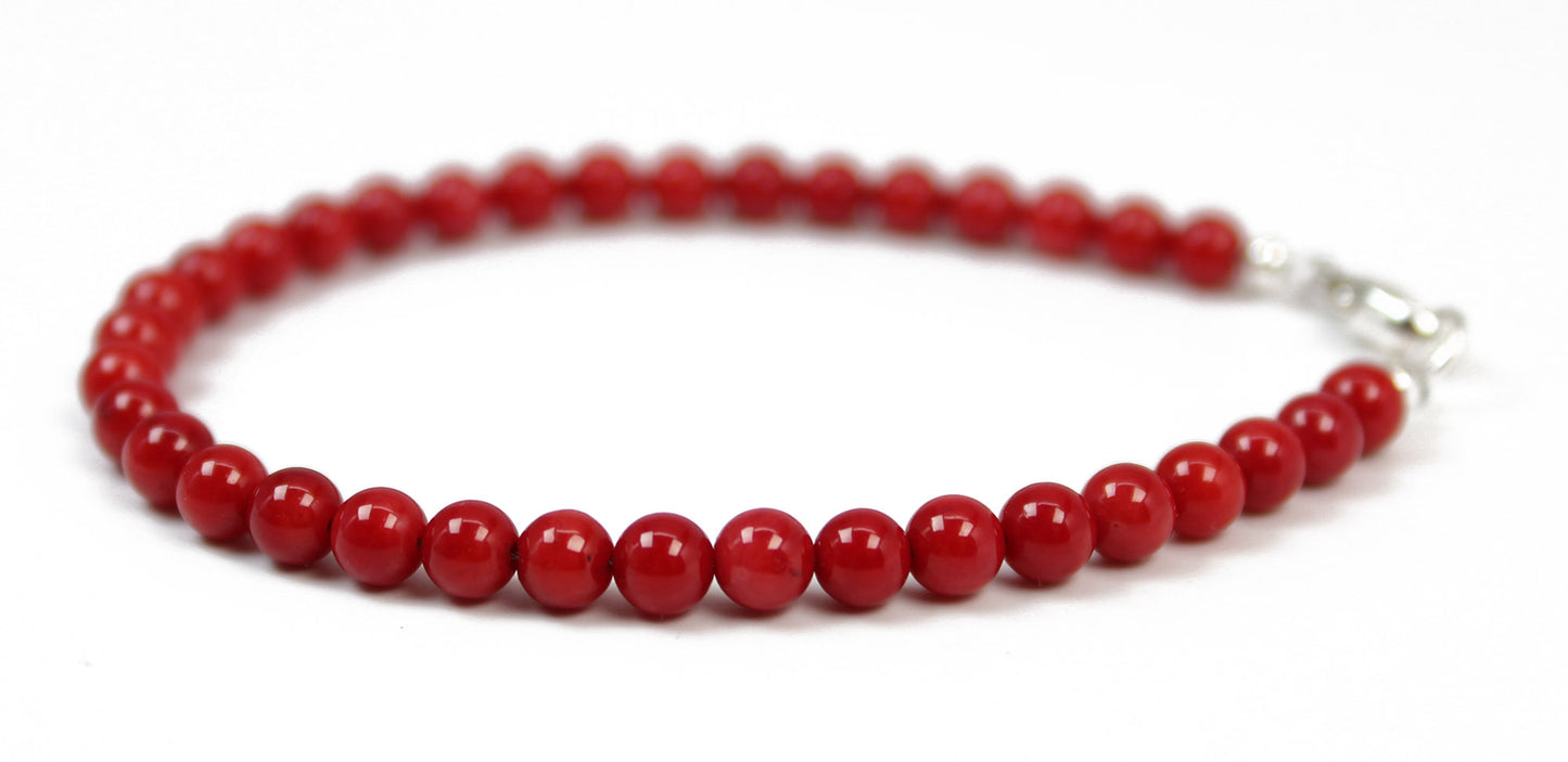 A simply beautiful red coral bracelet. This bracelet is a single strand of red bamboo coral beads. You could wear this alone or stack with other bracelets for a layering effect. The beads are small about 4mm in diameter. I have hand strung these beads using a premium beading wire that has beautiful drape and it fastens with a sterling silver or yellow gold filled lobster clasp. Made to order from 6" to 8.5" in length. Just choose the length you prefer at check out.